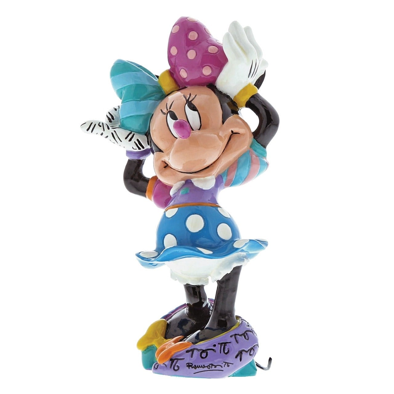 Minnie Mouse, Romero Britto'nun bu eğlenceli tasarımında renkli fiyonklu ve puantiyeli elbisesiyle kendini çok güzel hissediyor. Hızlı bir neşe patlaması için onu masanıza, şifonyerinize veya komodininize yerleştirin | reçine Figür Biblo çok parlak parlak bir yüzeye sahiptir ve markalı bir hediye kutusunda sunulur. Bu ürün elle boyandığından benzersiz varyasyonlar beklenmelidir. Oyuncak veya çocuk ürünü değildir. Yalnızca yetişkinlere yöneliktir.
