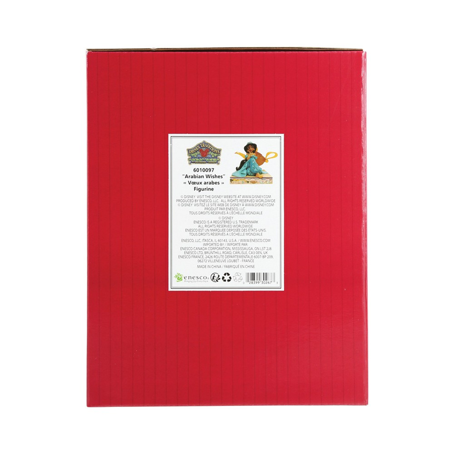 Jim Shore'un bu Disney Traditions serisinde ikonik Walt Disney prensesleri, ünlü aksesuarları ön plana çıkarılıyor. Hikayesini gösteren bir kaideyle bu parça, Jasmine'in büyük bir Genie lambasının yanında yeni bir hayat hayal etmesini anlatıyor. Herhangi bir Aladdin hayranı için mükemmel bir hediye. Markalı bir hediye kutusunda paketlenmiştir.