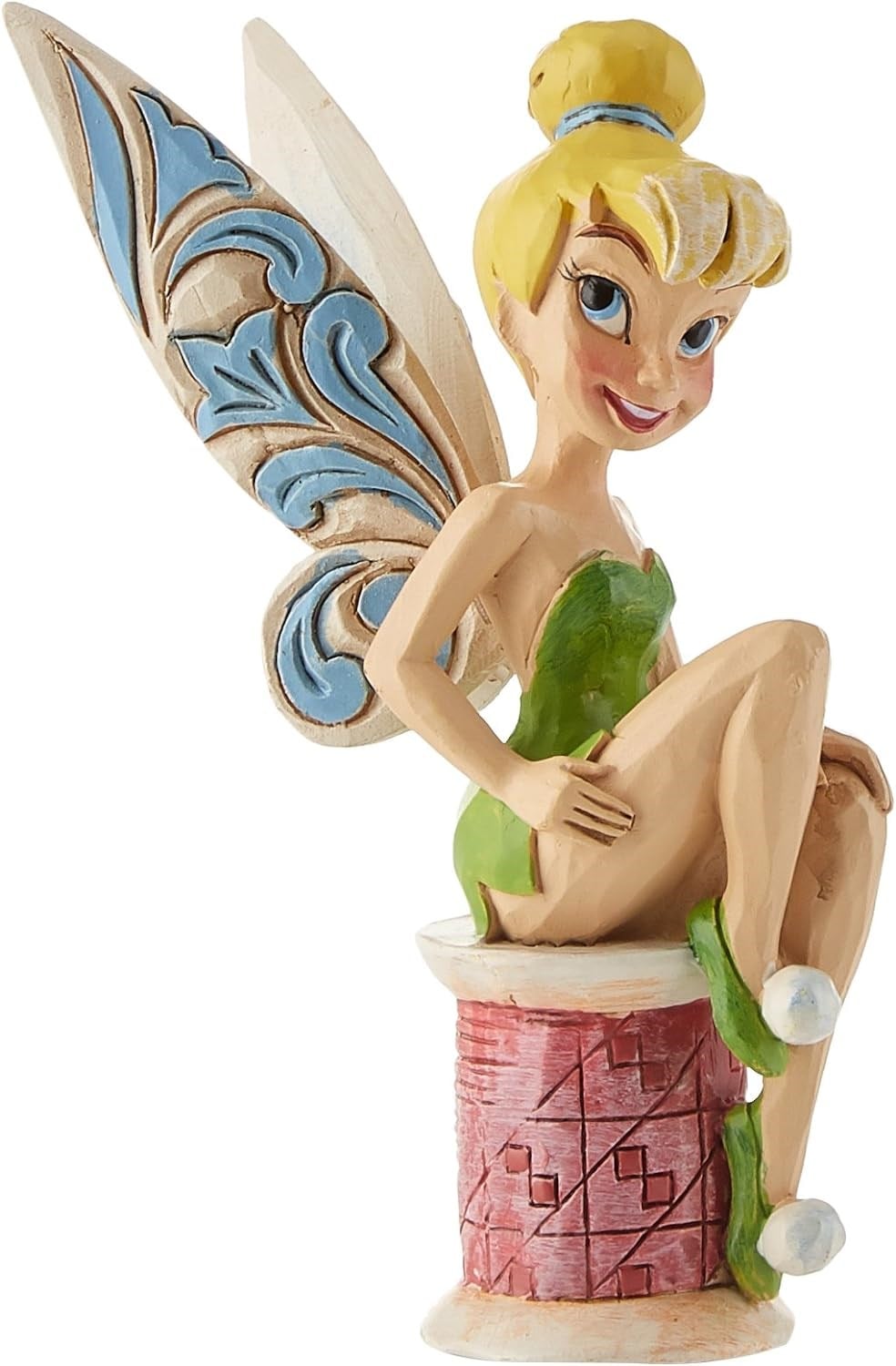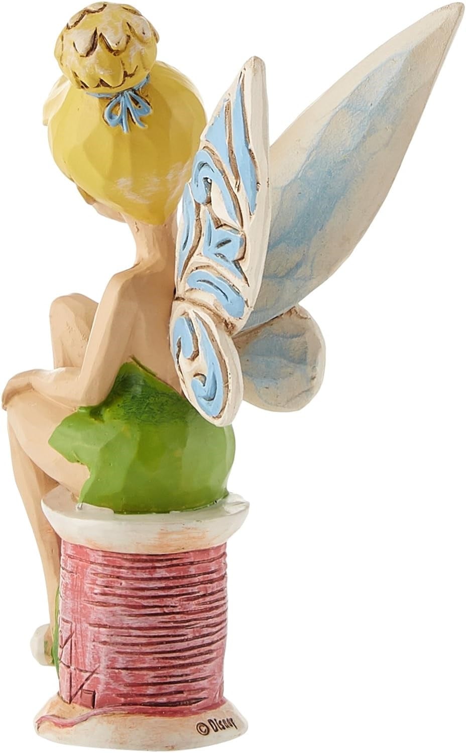 Hınzır peri, taş reçineden yontulmuş ve tuhaf halk sanatı motifleriyle elle boyanmış bir iplik makarasının üzerinde poz veriyor. Jim Shore'un Disney Traditions koleksiyonundan "Crafty Tink" figürü Klasik Disney karakterlerini halk sanatı tasarımlarıyla birleştiriyor. Figür, Walt Disney'in "Peter Pan" filmindeki Tinker Bell'i elle boyanmış güzel detaylarla yansıtıyor