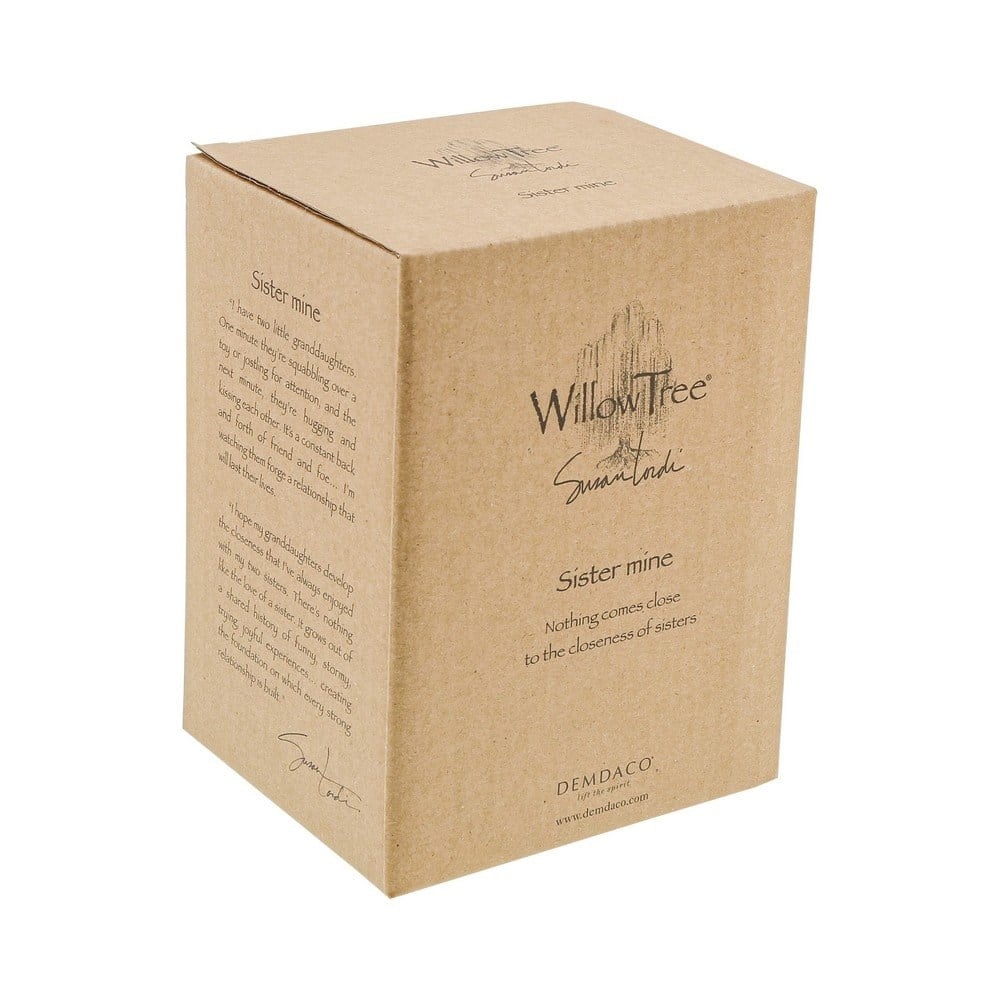 Willow Tree, aşk, yakınlık, şifa, cesaret, umut... hayatta karşılaştığımız tüm duyguları temsil eden samimi bir figüratif heykel serisidir. Bu ikonik barış ve dinginlik figürü, kederli zamanlarda şifa, rahatlık, umut ve hatırlamanın somut bir hatırlatıcısıdır. "Umarım iki kız kardeşimle her zaman sahip olduğum yakınlığı torunlarım geliştirir. Bir kız kardeşin sevgisi gibisi yoktur. Komik, fırtınalı, zorlu, neşeli deneyimlerin ortak bir geçmişinden doğar... temeli oluşturur. her güçlü ilişkinin üzerine inşa edildiği yer." - Susan Lordi. Ürün reçineden yapılmıştır ve kurşunsuz boya ile elle boyanmıştır. Markalı bir hediye kutusunda ve 'Hiçbir şey kız kardeşlerin yakınlığına yaklaşamaz' yazan bir hediye etiketinde sunulur.